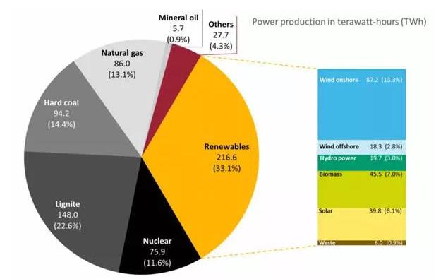 德国能源智库Agora数据显示,2017年,德国可再生能源发电创造了新的记录,总发电量首次超过200太瓦时,占总发电量36.1%,这些发电机组主要来自风能、生物质、太阳能和水电。目前,德国已有140万个光伏装置入网。到2017年,德国将有52吉瓦产量的光伏设备完成安装,其市场占有率将继续大幅增长。