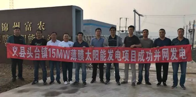 6月14日17点58分,由科诺伟业承建的国内最大山地CIGS(铜铟镓硒)薄膜太阳能电站全容量成功并网发电。该项目工程装机容量15MW,由锦州银行捐助建设,是义县首个成功并网的CIGS(铜铟镓硒)薄膜太阳能扶贫电站。