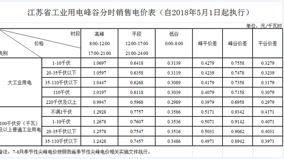 江苏峰谷电价表