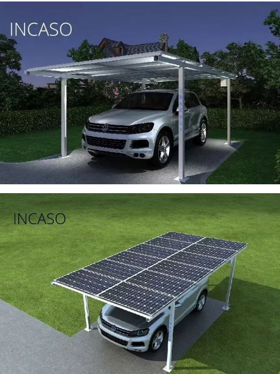 相比于住房屋顶,车棚或者车库更加灵活方便,可以直接在棚顶加装光伏,也可以在建车棚车库的时候,直接把屋顶做成光伏屋顶,既能为车辆遮风挡雨,又能利用太阳能创造出清洁光伏能源供电动车充电、灯光照明和并入电网。