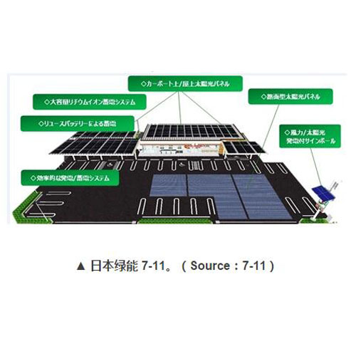 2018 年 5 月,神奈川县相模原市的绿能环保「7-11 相模原桥本台 1 丁目店」开张,屋顶与停车场也安装大量太阳能板。该商店经理指出,太阳能道路系统每年可以产生 16,145KWh 电力,可抵消 7-11 的 9% 电力;屋顶太阳能则每年可产生 64,608KWh 电力,满足该店 36.6% 用电量。