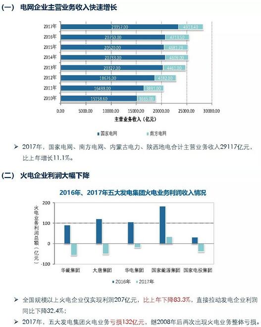 中国电力行业报告2018:五大发电集体亏损,两大电网收入持续增长