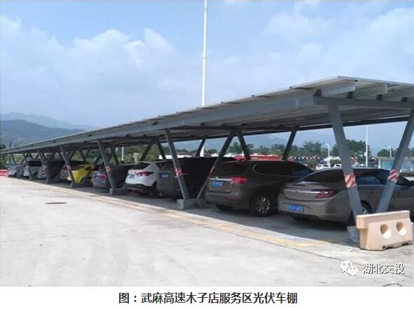 从2015年6月开始,新致公司按照“点、线、面”的路线分步实施。坚持技术引领,同步建设,同步并网。7月31日在武麻高速木子店服务区用当初最先进的270W高效单晶硅组件建成了湖北省首个高速公路服务区总装机容量120.96KW光伏停车棚。该光伏车棚的建成既有效地利用了服务区场地,又为服务区提供了清洁的可再生能源,还为服务区提升形象树立了典范。