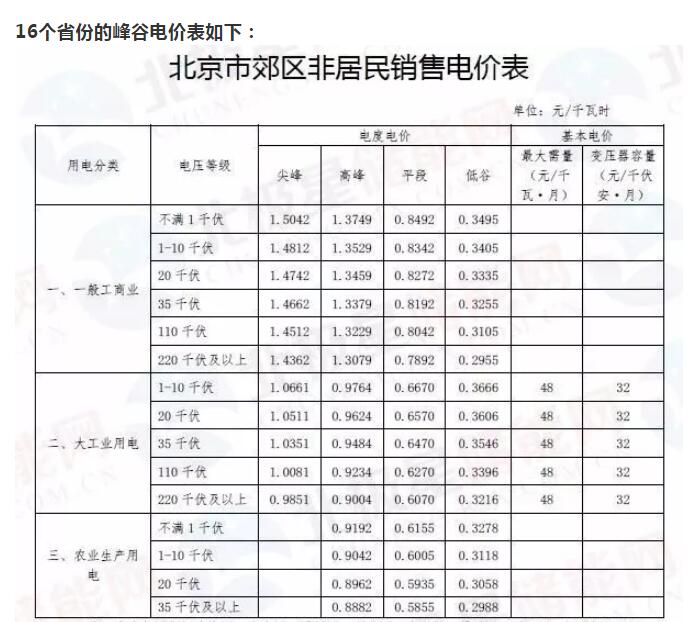 今年全国两会上,政府工作报告提出要“大幅降低企业非税负担”,首次明确了降低电价的量化指标——“要降低电网环节收费和输配电价格,一般工商业电价平均降低10%”。继国家发改委发布了《关于降低一般工商业电价有关事项的通知》的特急文件后,其中包括江苏、浙江、河北、山西、安徽、福建、山东、河南、湖北、广东、海南、贵州、云南、陕西、内蒙古、广西、宁夏、北京、天津、上海、重庆等省市调整了一般工商业电价,小编特意整理了相关省份调整后的峰谷电价。
