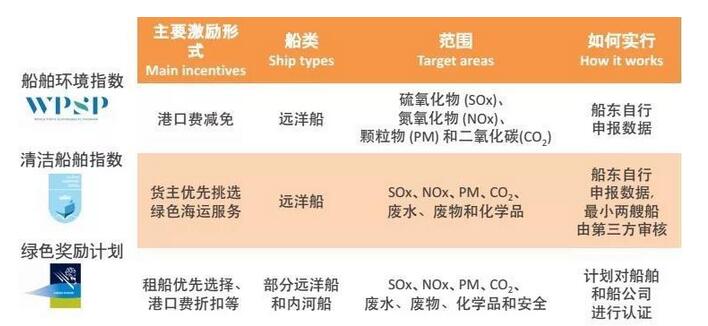 目前行业主导的计划主要有四个:船舶环境指数(ESI)、清洁船舶指数(CSI)、温室气体(GHG)排放评级以及绿色奖励计划。