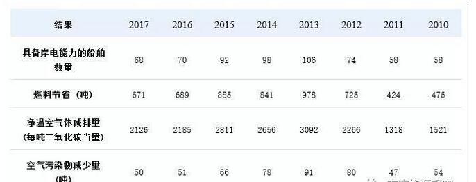 2010—2017年使用岸电的船舶情况 数据来源:Port Of Vancouver