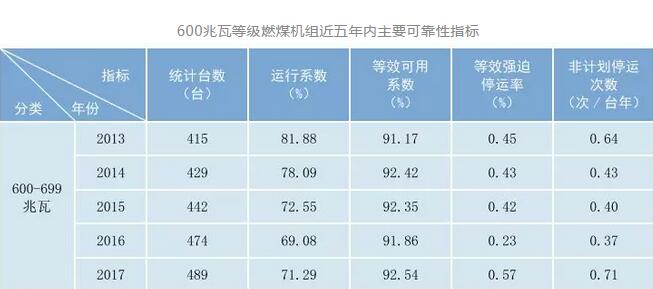 2017年600兆瓦等级火电机组统计489台,均为燃煤机组。其中国产459台,进口30台。