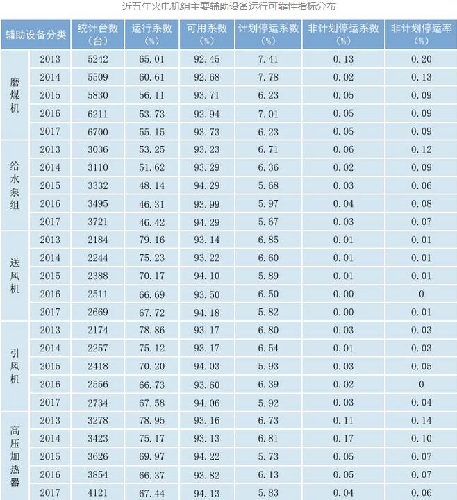 2017年200兆瓦及以上容量火电机组主要辅助设备运行可靠性
