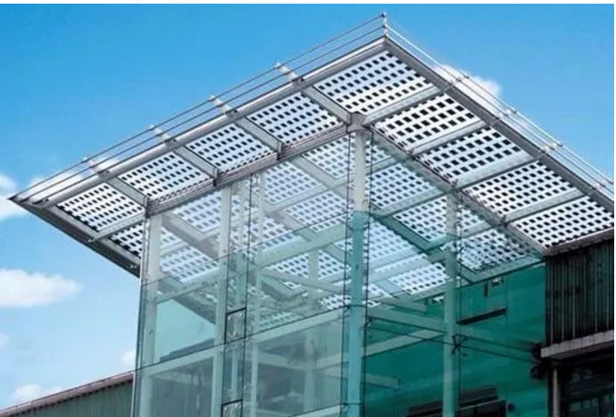 而光伏建筑采用的全玻组件可通过调整电池片的排布或采用穿孔硅电池片来达到特定的透光率,即使是在大楼的观光处也能满足光线通透的要求。