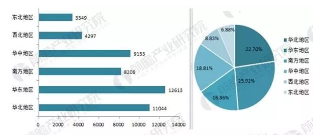 图表5:截至到2017年12月11日中国售电公司区域分布情况(按企业数量)(单位:个,%)