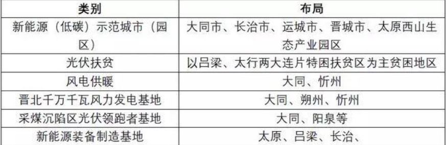 到“十三五”末,山西省统筹风电千万千瓦基地建设和低风速区域风电开发,风电装机容量为1600万千瓦,每年新增186万千瓦左右,占全国年度新增的7.2%。充分利用“太阳能+采煤沉陷区治理”、“太阳能+扶贫”、“太阳能+农业生产”、“太阳能+城乡能源低碳化”、“太阳能+工业碳排放控制”等模式潜力,到“十三五”末,太阳能发电力争达到1200万千瓦,其中光伏发电1050万千瓦左右,光热发电达到50万千瓦,每年平均新增220万千瓦左右,占全国年度新增的9.3%。
