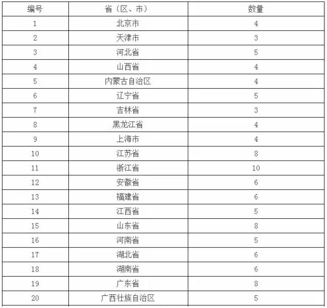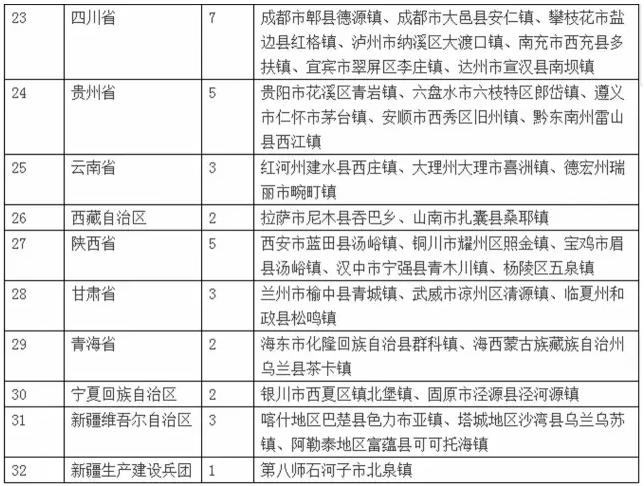 3、各省(区、市)特色小镇推荐数量分配表