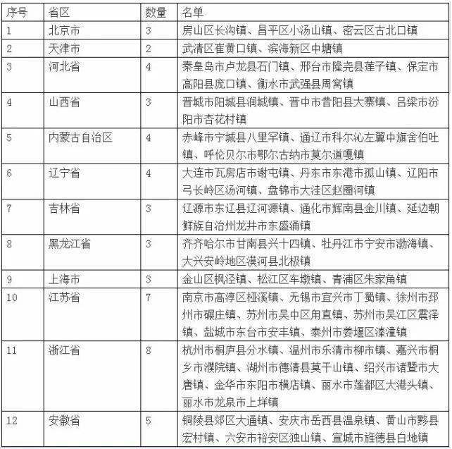 第一批中国特色小镇名单(127个)