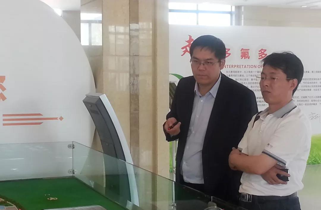 电池百人会理事长于清教在多氟多副董事长李云峰的陪同下调研多氟多 摄影/电池网 肖何