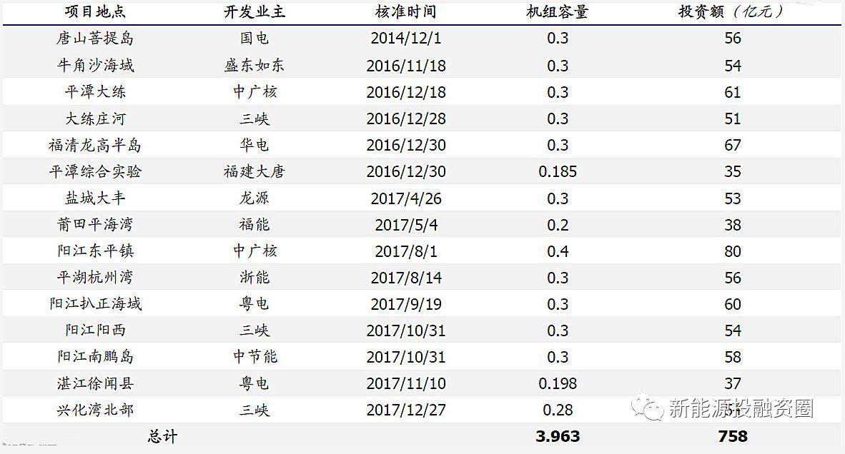 《风电发展“十三五”规划》海上风电建成并网5GW,在建10GW。根据国家2016年11月29日《风电发展“十三五”规划》,到2020年底,我国海上风电并网装机容量将达到500万千瓦以上,开工容量超过1000万千瓦。根据风能杂志数据,截止2017年8月,国内在建海上风电项目4.8GW。2017年1-9月,国内海上风电招标量达到2.9GW。未来装机容量有望提升。2018年3月27日,三峡新能源与天津市滨海新区签署《投资合作协议》,三峡新能源将在天津市滨海新区南港工业区投资约180亿元,分期建设共100万千瓦海上风电项目,项目全部建成后,预计年发电量约24亿千瓦时,年营业收入约20亿元。其中项目一期装机为35万千瓦,总投资约52亿元,预计2022年全部机组投运。同时2018年4月11日,国家能源局批复了《广东省海上风电发展规划(2017—2030年)(修编)》。根据《规划》内容,到2020年底前广东省计划开工建设海上风电装机容量达1200万千瓦以上,其中建成投产200万千瓦以上;到2030年底前建成约3000万千瓦。目前广东省有6个在建海上风电项目,总装机容量162万千,其中珠海桂山海上风电项目已安装完成19台风机,共计5.7万千瓦,预计今年底项目整体投产。今年以来多地积极响应海上风电政策,海上风电将进入高速发展周期。