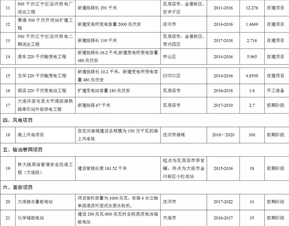 重点发展风能、核能、太阳能、生物质能源、储能项目及相关产业。“十三五”期间,积极推进红沿河核电二期工程建设,确保2022年实现投产。切实做好庄河南尖核电厂址保护,稳步推进相关前期工作。完成庄河海域150万千瓦海上风电的开发建设,因地制宜发展陆上风电、光伏发电,开工建设抽水蓄能电站和化学储能电站。