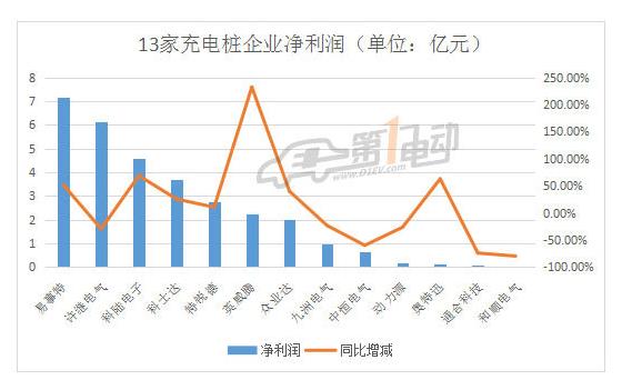 整体看,充电桩概念上市企业2017年报业绩良好。在这13家充电桩企业中,7家企业的净利润均有不同程度的增长,占总数54%。