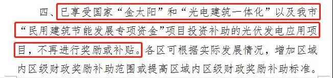 已享受国家“金太阳”和“光电建筑一体化”以及佛山市“民用建筑节能发展专项资金”项目投资补助的光伏发电应用项目,该市将不再进行奖励或补贴。