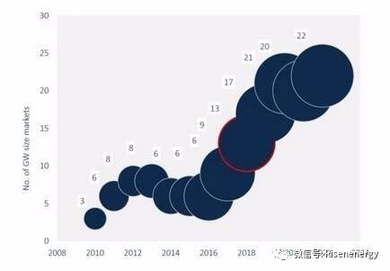 GTM Research上个月公布了最新的“全球太阳能需求监测”,预测2018年将安装104吉瓦太阳能,年增长率为6%。此外,GTM预计,至少到2022年每年的新增容量将轻松超过100吉瓦。