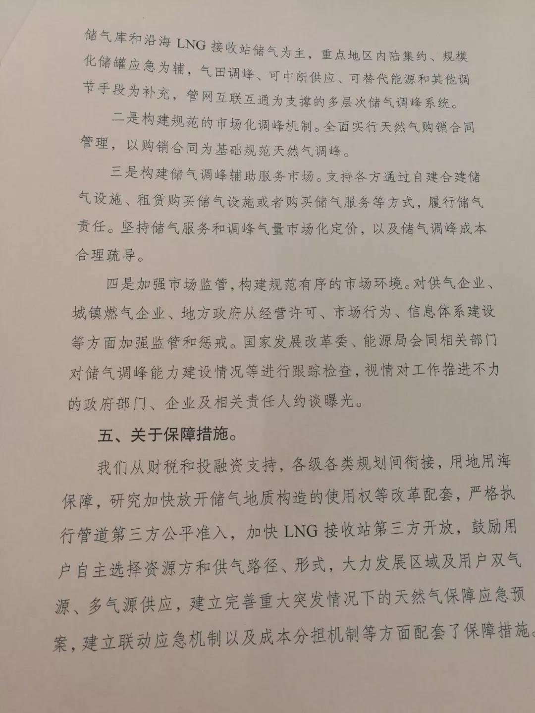 出台《关于加快储气设施建设和完善储气调峰辅助服务市场机制的意见》。为着力解决我国天然气发展不平衡、不充分问题,加快补足储气能力短板,明确政府、供气企业、城镇燃气企业等相关各方的储气调峰责任与义务,国家发改委、国家能源局联合印发了《关于加快储气设施建设和完善储气调峰辅助服务市场机制的意见》。