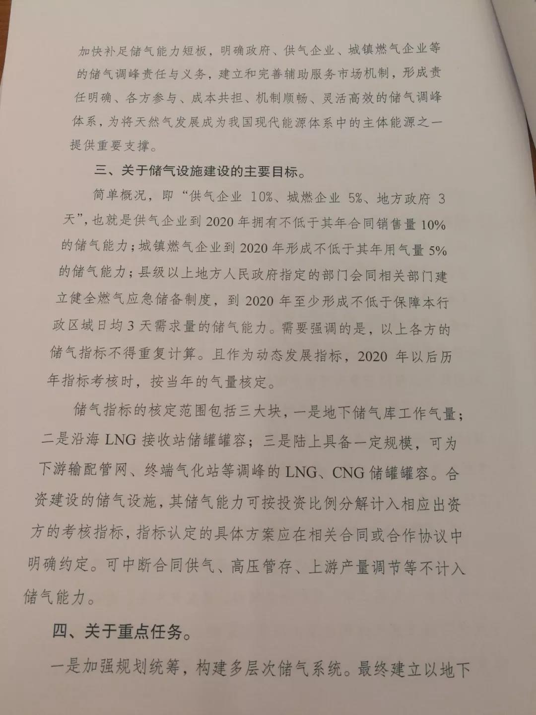 具体来讲,就是到2020年,供气企业要拥有不低于其合同年销售量10%的储气能力;城镇燃气企业要形成不低于其年用气量5%的储气能力;县级以上地方人民政府至少形成不低于保障本行政区域日均3天需求量的储气能力。