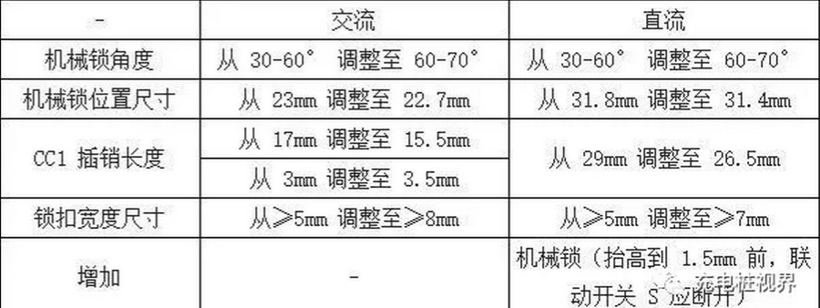 在安全性方面,新标准增加了充电接口温度监控、电子锁、绝缘监测和泄放电路等功能,细化了直流充电车端接口安全防护措施,明确禁止不安全的充电模式应用。在兼容性方面,修改了部分触头和机械锁尺寸,新旧插头插座能够相互配合,直流充电接口增加的电子锁止装置,不影响新旧产品间的电气连接,用户仅需更新通信协议版本,即可实现新供电设备和电动汽车能够保障基本的充电功能。