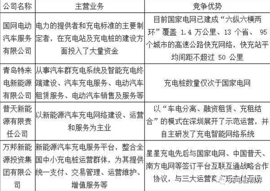 国内充电桩四大运营龙头主营业务与竞争优势