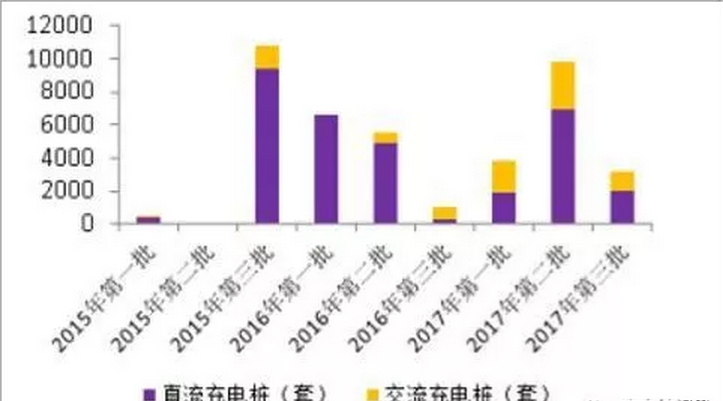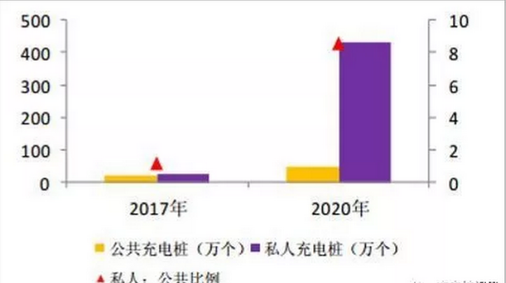 截止至 2017 年年末, 我国共建成公共充电桩约 21 万个,总的车桩比约为 8: 1,这远远无法满足新能源汽车的正常充电需求。