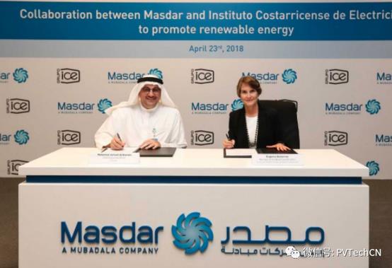 阿布扎比能源公司Masdar和国有公共事业公司哥斯达黎加电力研究所签署了一份谅解备忘录以共享可再生能源开发的技术知识和项目经验。