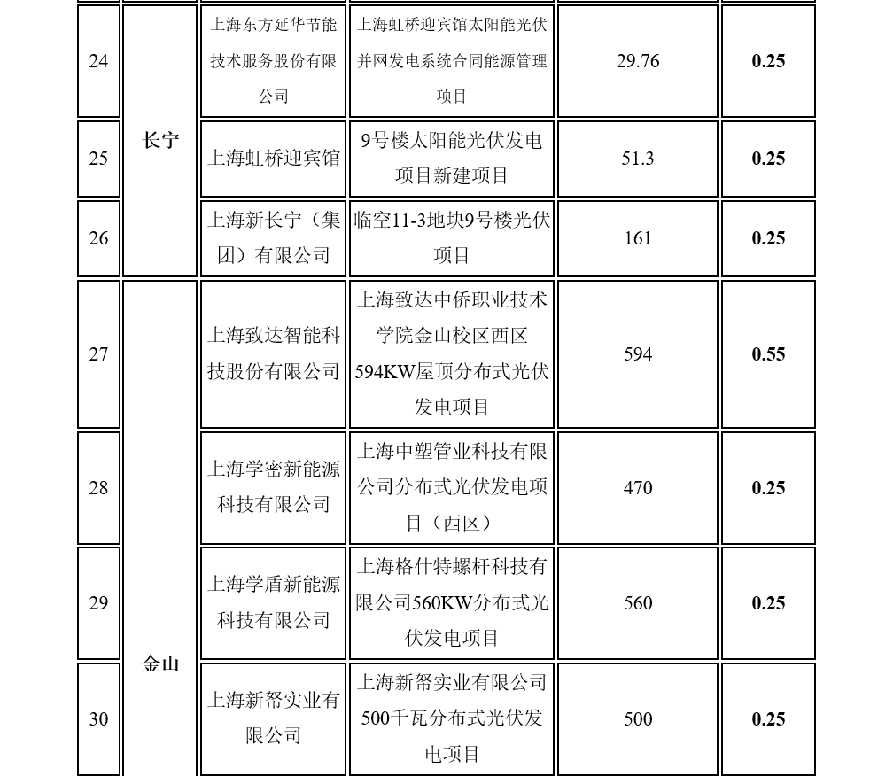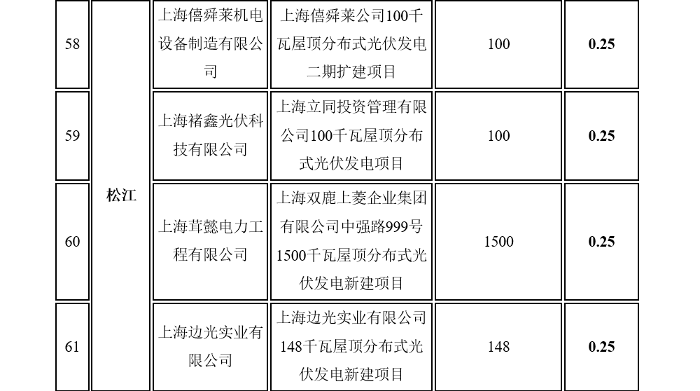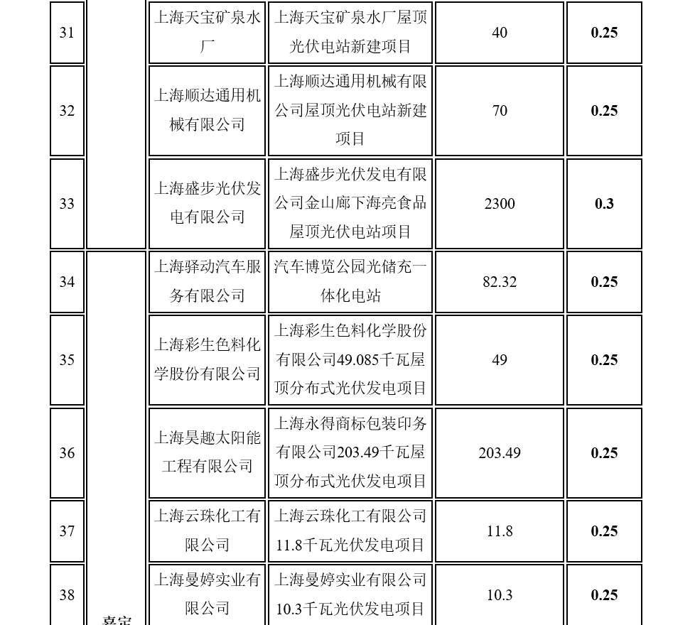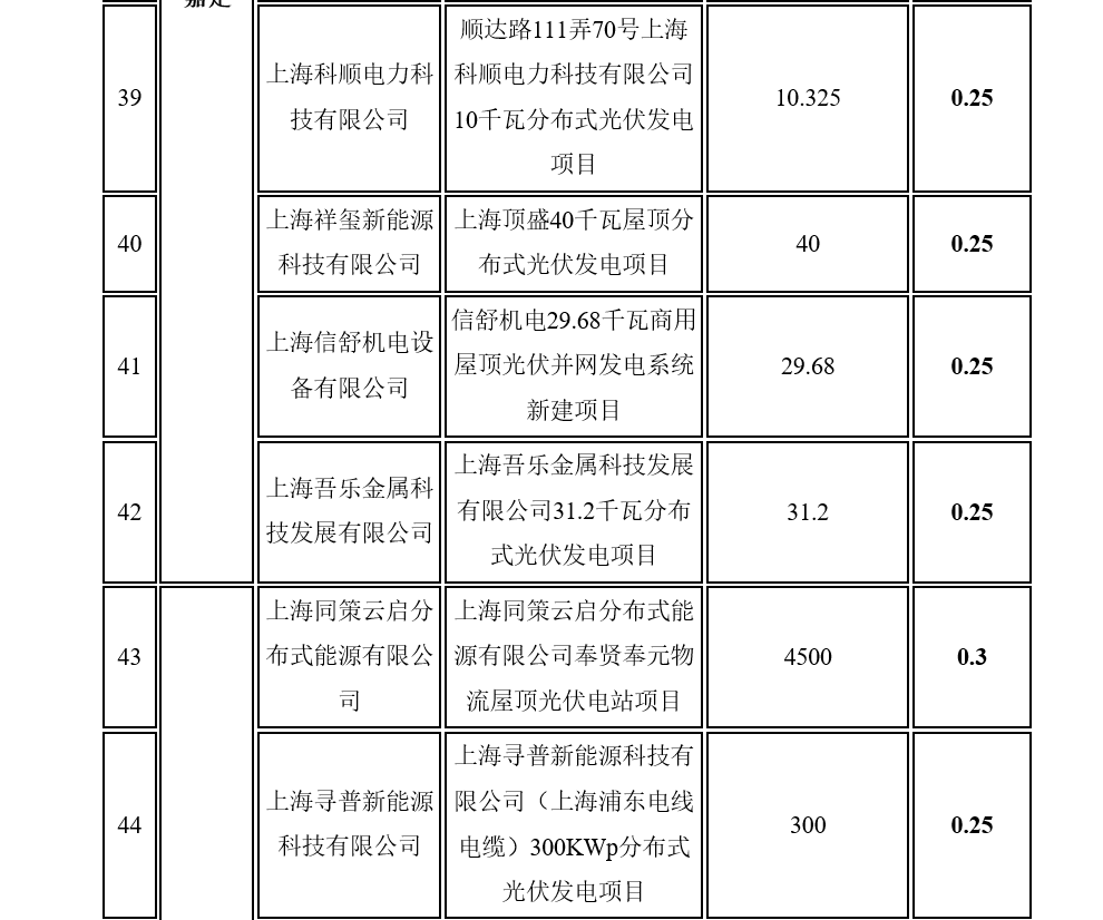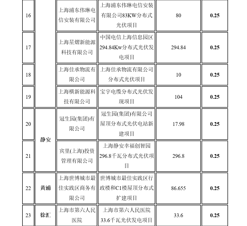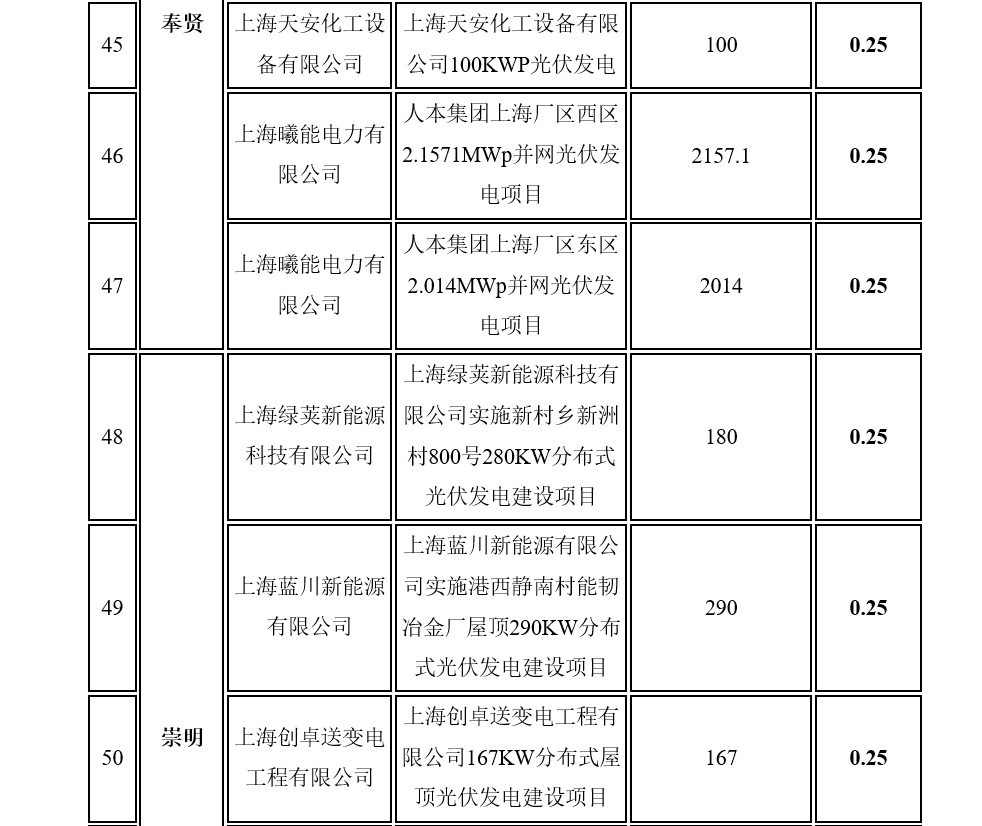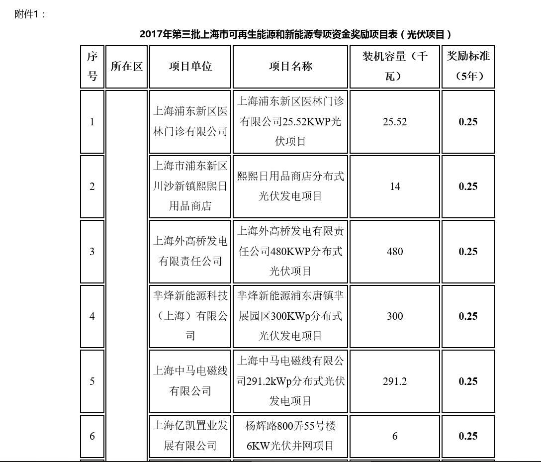 附件:1、2017年第三批上海市可再生能源和新能源专项资金奖励项目表(光伏项目)