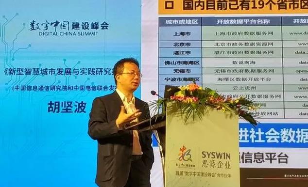 2018年4月23日,中国信息通信研究院与国家发改委城市和小城镇改革发展中心、国家信息中心以及福州市人民政府在首届数字中国建设峰会期间,共同举办了“新型智慧城市新闻发布会”。会上,中国信息通信研究院产业与规划研究所所长胡坚波发布了《新型智慧城市发展与实践研究报告》并进行了解读。报告受到了与会代表的普遍关注,反响热烈。