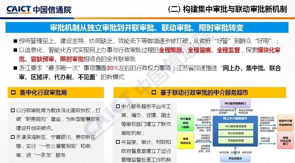 二是审批机制。审批机制从独立审批转变为并联审批、联动审批以及限时审批,如集中化行政审批局,基于联动行政审批的中介服务超市,均为新型智慧政务的建设提供了新思路;