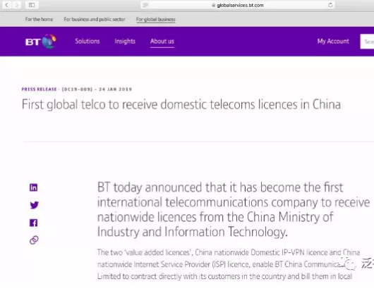 工信部也正式宣布:英国电信(BT)获得了在中国全国性经营通信的牌照。。。