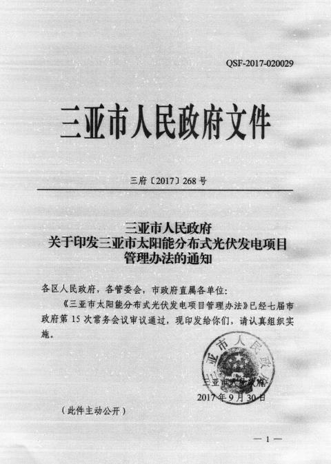 连续5年享受补助!海南三亚正式印发太阳能分布式光伏发电管理办法