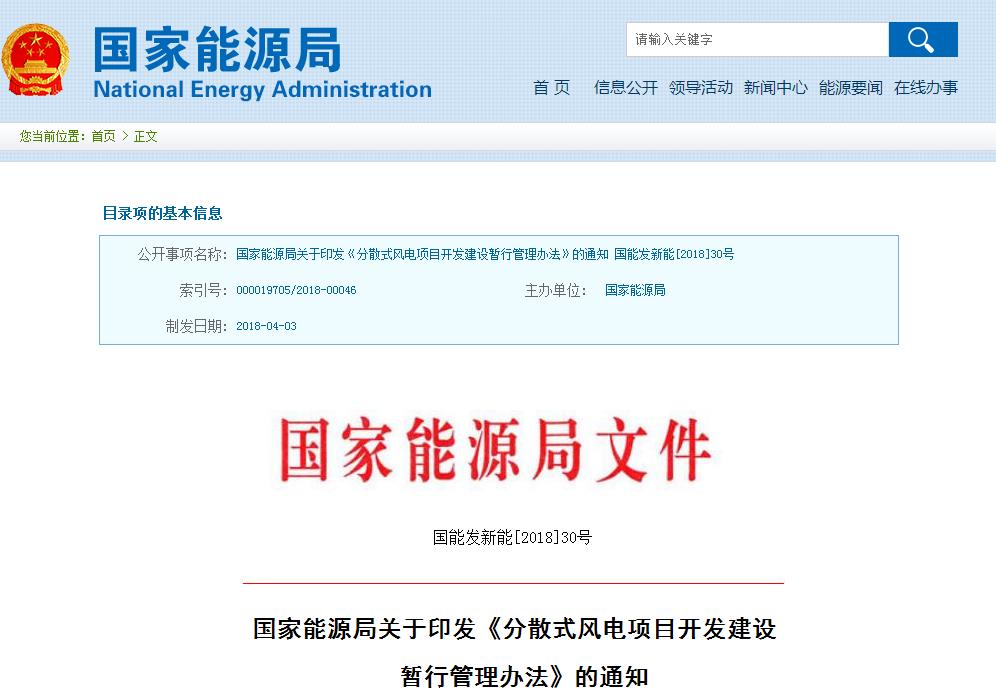 重磅 || 国家能源局下发《分散式风电项目开发建设暂行管理办法》 通知