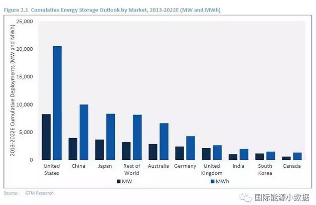 预计到2022年全球累计储能装机可达每年8.6吉瓦、2160万千瓦,届时中国储能装机攀升至世界第2位,依然列美国之后。