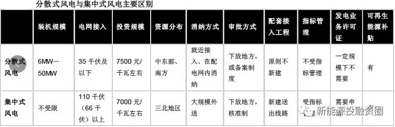 与集中式风电项目相比,分散式风电最大特点是规模小、可以实现并网消纳,无需大规模外送。按照目前政策要求,分散式接入风电项目装机容量一般在6MW—50MW,单个项目总容量不超过50MW。因分散式风电项目无需新建高压送电线路和 110kV、66kV变电站,可以节省输配环节投资。