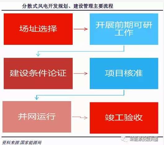 与集中式风电站不同,政策导向上一直强调简化分散式风电项目的核准流程。2011年11月国家能源局印发《关于分散式接入风电项目开发建设指导意见的通知》提出:各省能源(区、市)主管部门会同有关部门,简化分散式接入风电项目的核准流程,以及项目核准所需的支持性文件;电网企业应针对分散式接入风电项目设立简便高效的流程。