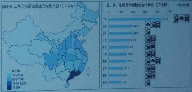 2018年3月,全国充电电量主要集中在京津冀、长三角、珠三角三个区域,其中北京主要以私人乘用车为主;广东、山东、江苏、河南、湖北、上海、四川、福建的电量流向主要以公交车等专用车辆为主,乘用小客车为辅;山西的电量流向主要以出租车为主,乘用小客车为辅。其中,广东省2142.6万千瓦时、山东省995.6万千瓦时、山西省990.2万千瓦时、江苏省882.9万千瓦时、陕西省820.1万千瓦时、北京市739.0万千瓦时、湖北省732.6万千瓦时、上海市581.9万千瓦时、福建省535.7万千瓦时、四川省529.2万千瓦时。