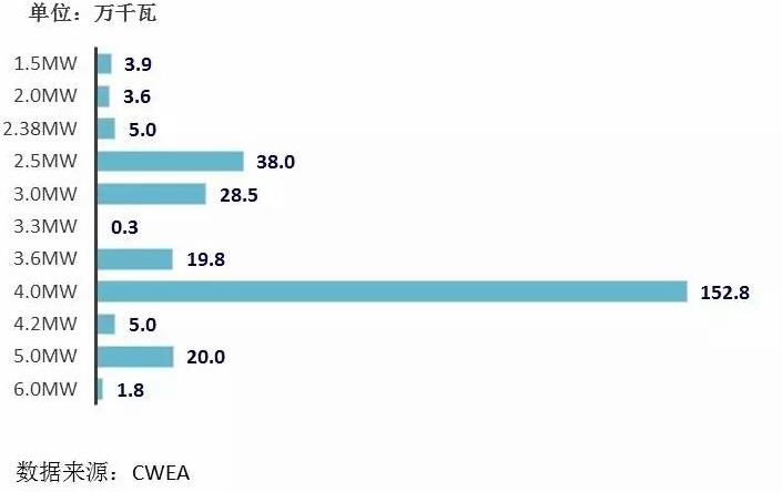 图18 2017年中国海上风电不同功率机组累计装机容量