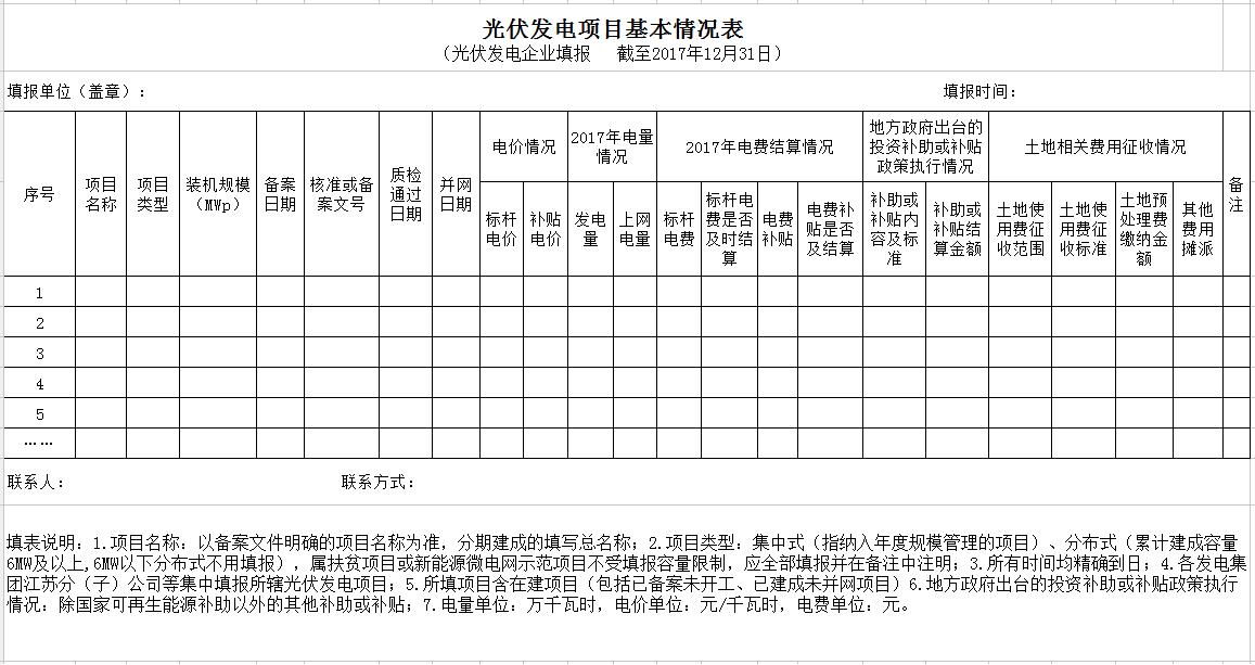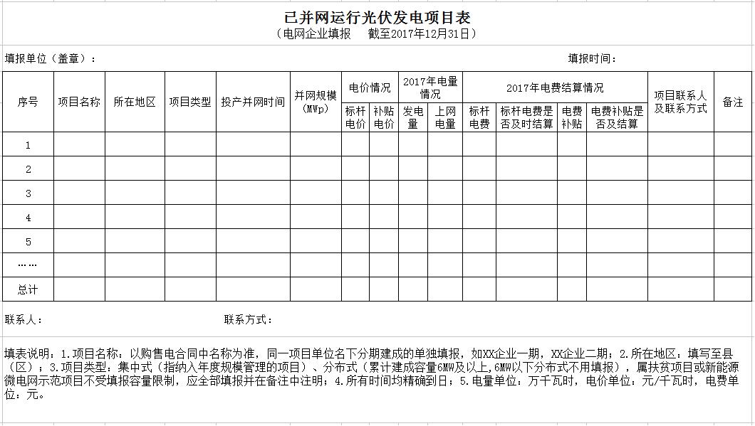 请省电力公司负责汇总全省2017年底前已并网光伏项目情况,按附表2、3格式要求填报(具体要求见附表填报说明),并对照监管内容进行自查形成报告。