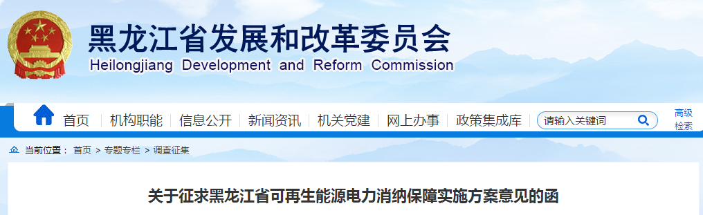 黑龙江省征求可再生能源电力消纳保障实施方案意见