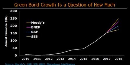 穆迪表示,今年的增长将以健康的速度发展,并远超2017年发行的1,550亿美元绿色债券纪录。