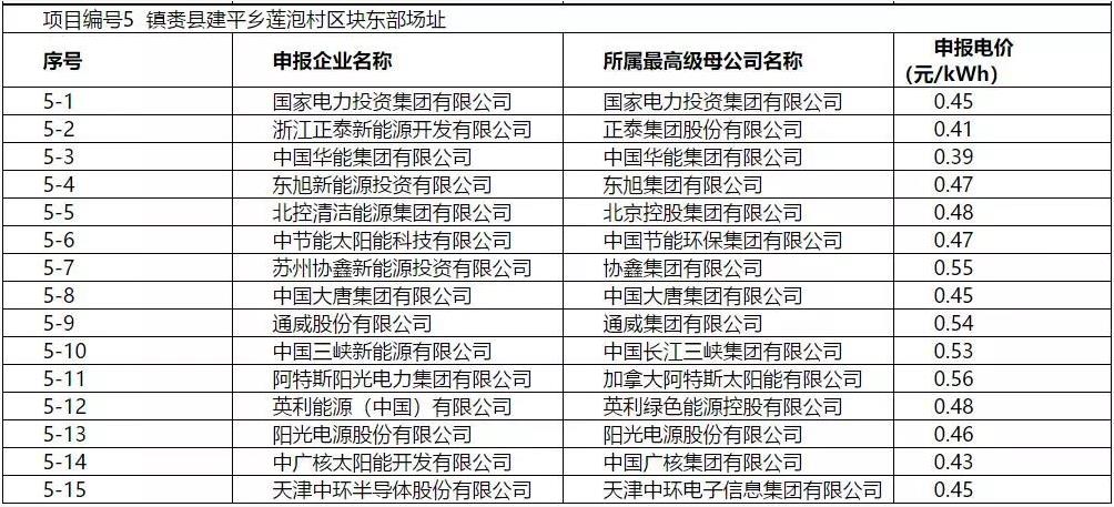 白城光伏发电应用领跑基地2017年竞争优选申报企业信息公示表
