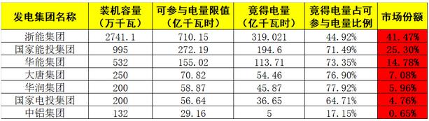 2.各发电集团燃煤电厂参与本次试点电量竟得电量情况