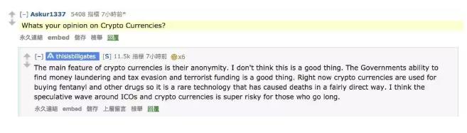 当一位Reddit用户指出,普通现金也可用于非法活动时,盖茨认为,加密技术因其操作高效、使用简单而脱颖而出。