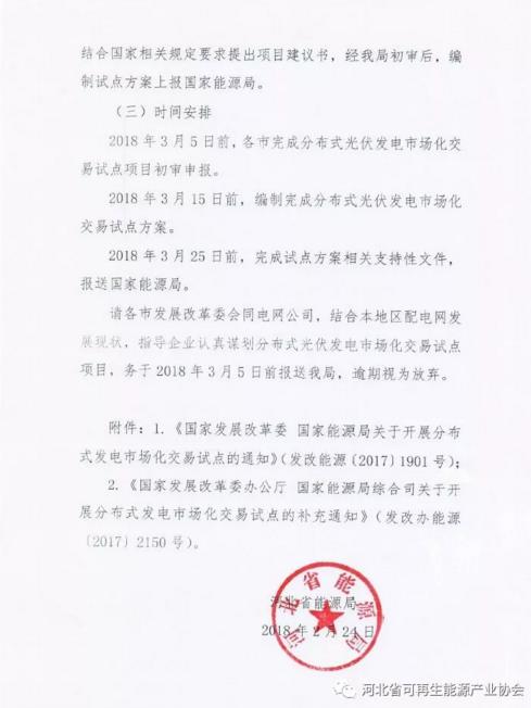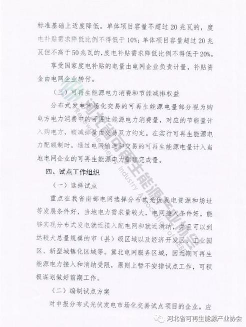 河北省能源局《关于开展分布式光伏发电市场化交易试点的通知》