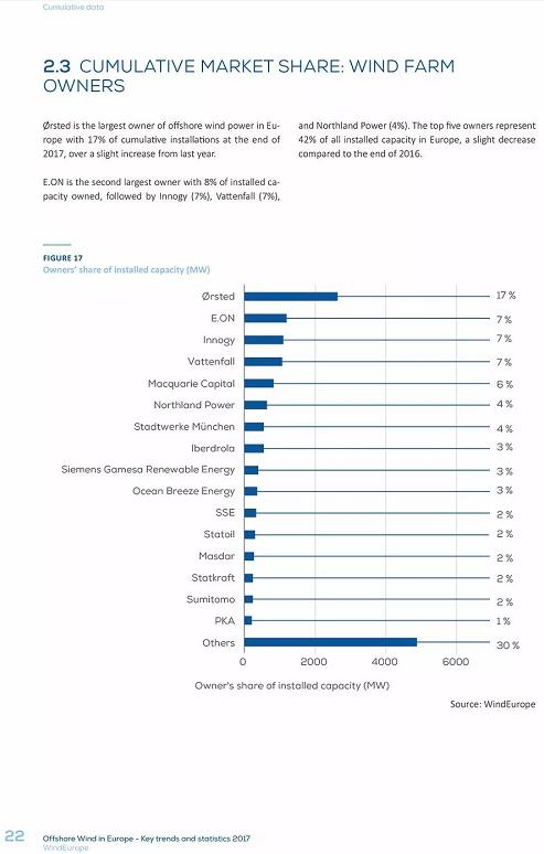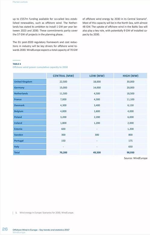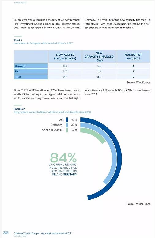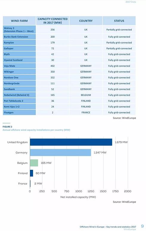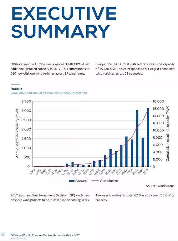 2017年欧洲海上风电装机统计数据及发展趋势(附完整报告)