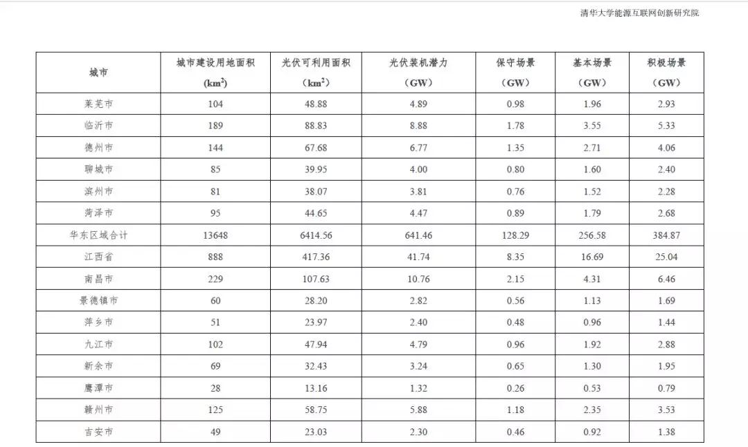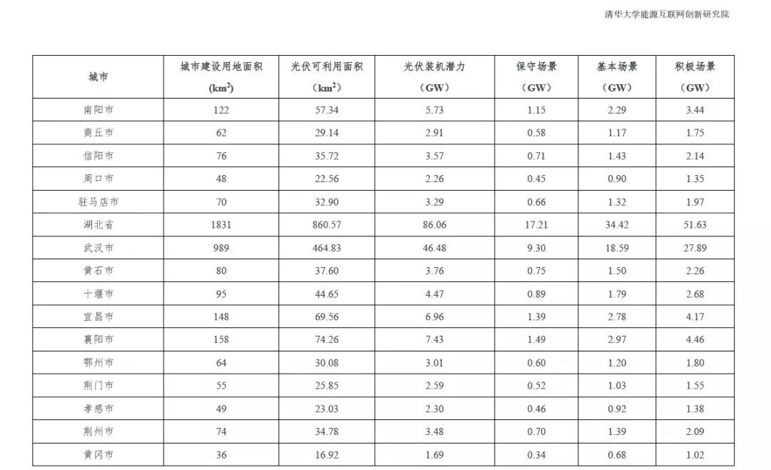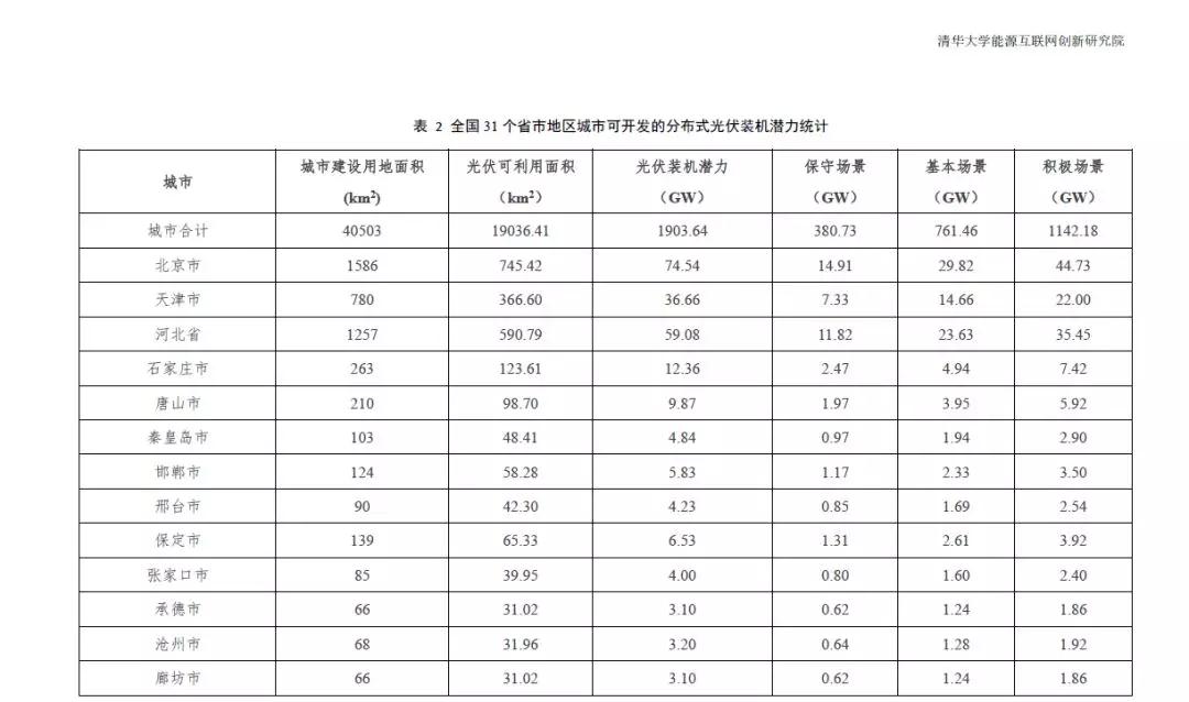 全国31个省市地区城市可开发的分布式光伏装机潜力统计