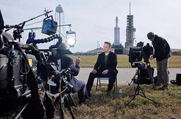 在发射现场接受媒体采访时也是派头十足,妥妥的一副好莱坞明星的架势。